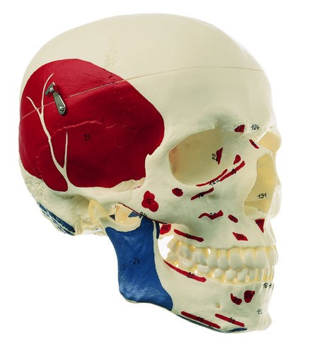 Popis odlitek ze skutečného vzorku, vyrobeno ze speciálního materiálu SOMSO-Plast®, vlastnosti jako AM150-0285, ale navíc se znázorněnými počátky a úpony nejdůležitějších svalů lebky
