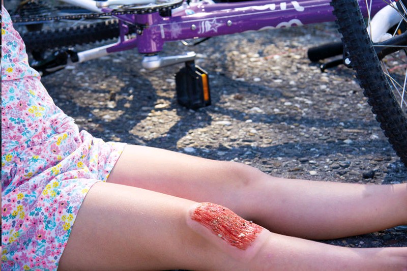 Imitace poranění odřeniny při použití umělé krve lze přidat do rány nějaké nečistoty nebo malé kamínky pro ukázku čištění. Imitace přilne k pokožce nebo figuríně. Pro delší používání lze dokoupit speciální lepidlo.Dodává se v úložném pouzdře.