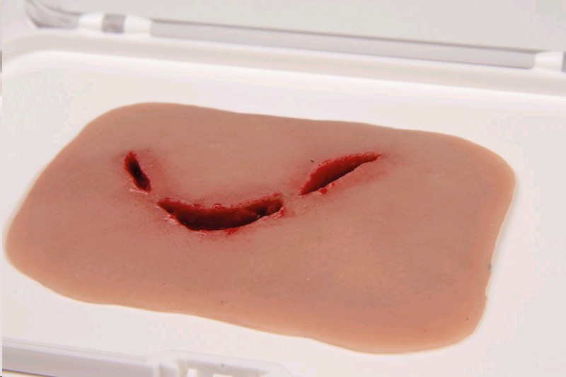 Popis Imitace poranění znázorňuje řez lahví. Model přilne nezávisle jak na lidskou pokožku tak i na simulačních modelech, pro delší použití může být připevněna speciálním lepidlem na kůži. Dodává se v úložném pouzdře.