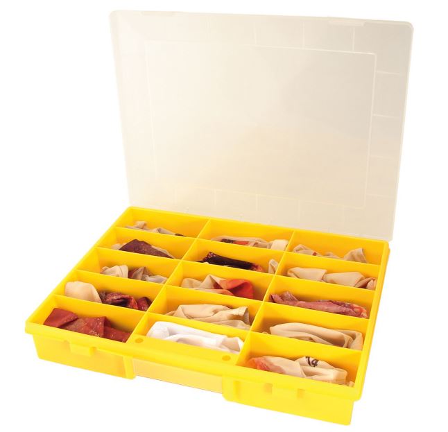 Materiál je omyvatelný na 30 °C a opakovaně použitelný. Aby byly simulace chráněny před poškozením při mytí, je součástí dodávky mycí sáček. Sada se dodává v pevné krabičce.