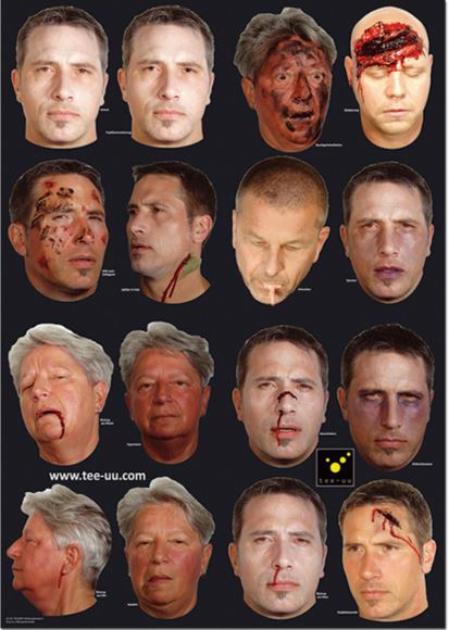 Popis Sada imitací poranění je určená k záchranářské figuríně CRASH & CARRY. Sada se skládá z 36 laminovaných dílů s různými realisticky vyobrazenými zraněními a z jednoho dílu pro individuální označení, např. "reagující", "v bezvědomí" atd.