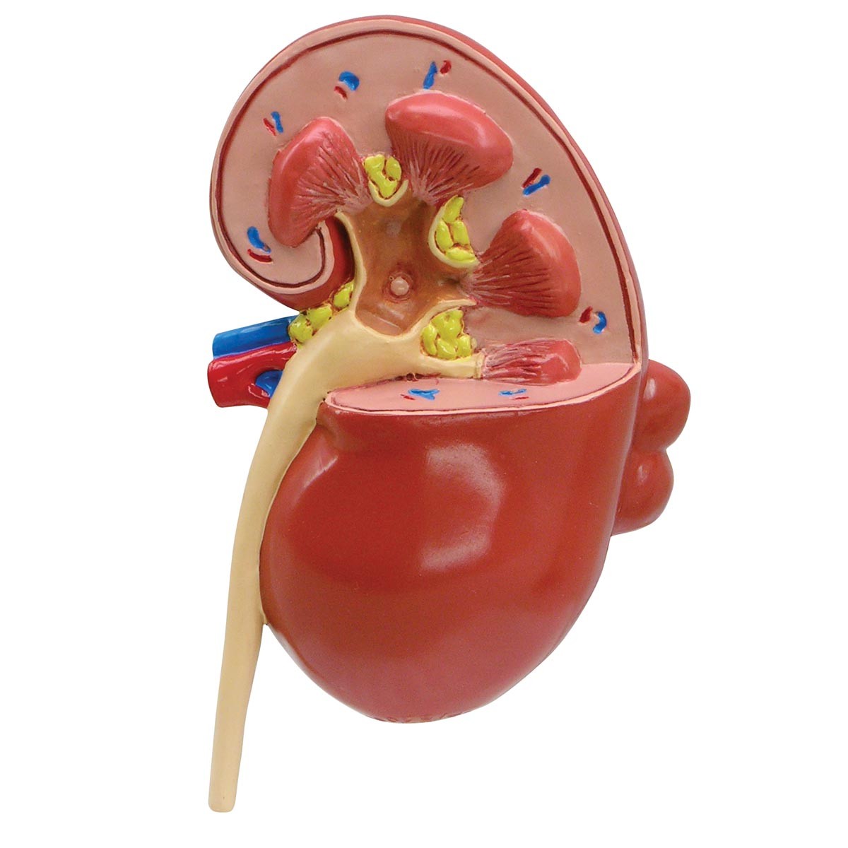 Tento zvětšený oboustranný model ledviny má na jedné straně výřez normální anatomie a na druhé straně výřez nemocné anatomie.