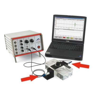 Toto příslušenství k přístrojům, které je pro podélné a příčné vlny (1002584) se používá pro pozorování šíření příčných vln v plastu a zjištění pružných konstant polyoxymethylenu (POM), jako je jeho smyk, pružnost a Poissonův poměr.