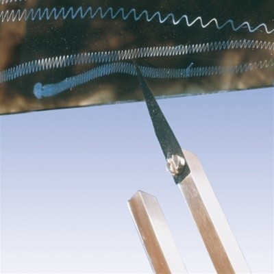 Pro demonstraci a nahrávání zvukových vibrací. Pro zaznamenávání kmitání na skleněnou desku na soklu je jeden ze dvou hrotů opatřen kovovou špičkou. Včetně skleněné desky.